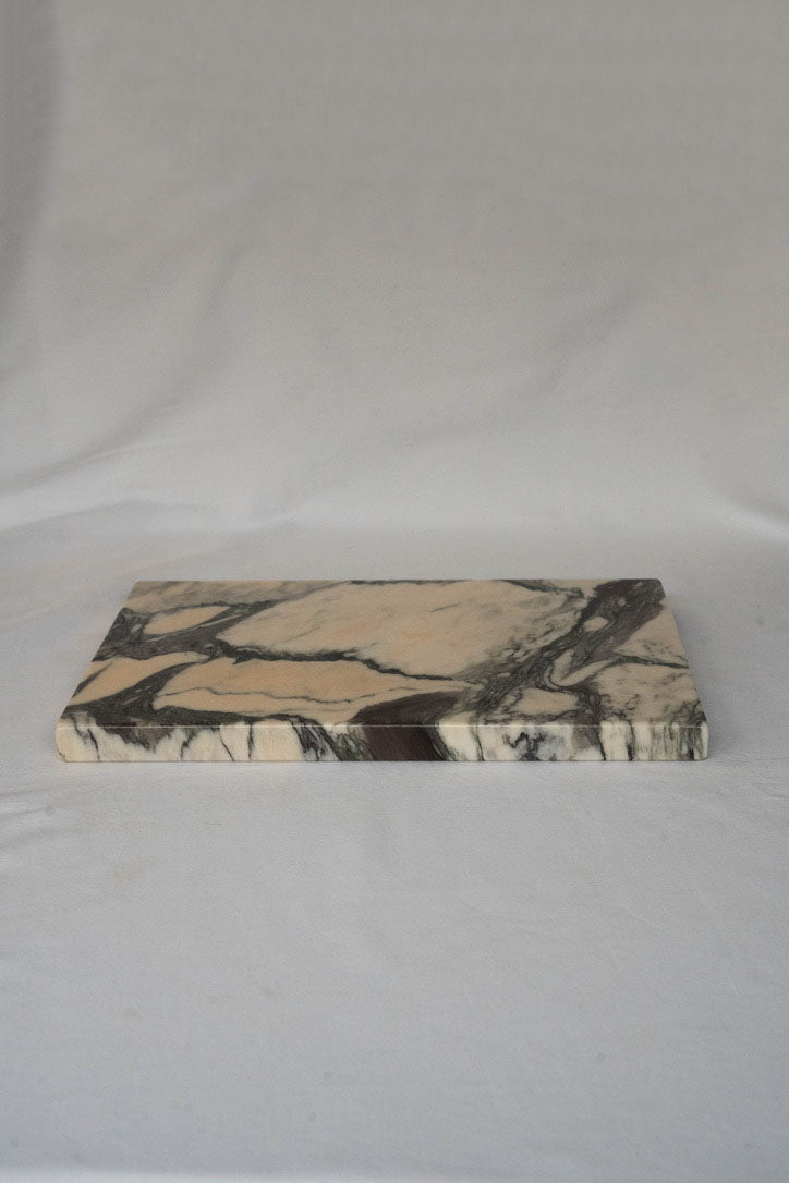 Elevate your surfaces with the Soleil Blush Plate, crafted from reclaimed Calacatta Viola Estremoz—a precious marble sourced from Portugal. With its warm peach tones and bold veining, each plate is entirely unique and effortlessly versatile. Use it as a cheese board, chopping board, hot plate, or decorative tray—the possibilities are endless. These thoughtfully repurposed offcuts have been given a second life, preventing unnecessary waste and reducing landfill contributions. Designed to transcend trends, these pieces will add function and personality to your space for years to come.